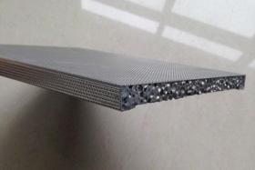 泡沫铝是在纯铝或铝合金中参加添加剂后,经过发泡技术而成,一起兼有金属和气泡特征。它密度小、高吸收冲击才能强、耐高温、防火功用强、抗腐蚀、隔音降噪、导热率低、电磁屏蔽性高、耐候性强、有过滤才能、易加工、易装置、成形精度高、可进行外表涂装。