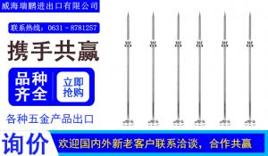 威海瑞鹏进出口有限公司成立于2017年,我们公司的各种五金产品出口于日本,韩国,菲律宾,在国家一带一路的政策下希望与更多的海外客户携手共赢!威海瑞鹏进出口有限公司主要经营各种标准紧固件,异体型,螺栓螺母,内迫外迫,镀铜包钢接地棒,欢迎国内外新老客户联系洽谈,合作共赢