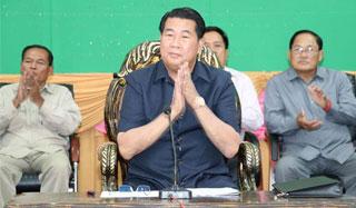 31日下午,贡不省省长占杰达与属下公务员和贡不省管理单位(约100人)进行会谈。